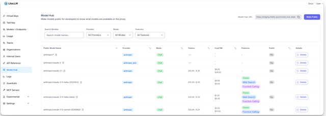 Users can now discover the MCP server via the public endpoint (PROXY_BASE_URL/ui/model_hub_table)